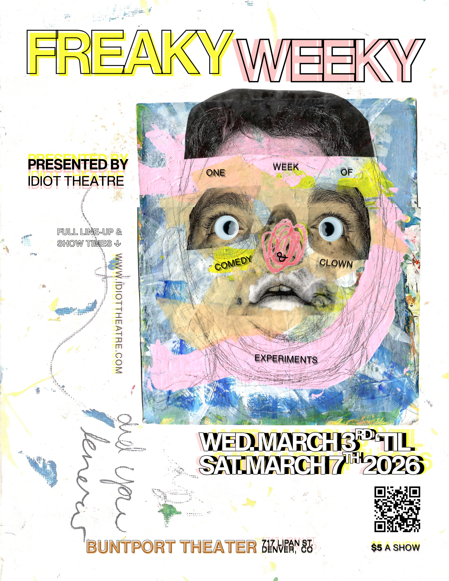 Freaky Weeky is a week-long festival in Denver for live stage experiements in alt-comedy, clown, puppetry, theater & performance art.